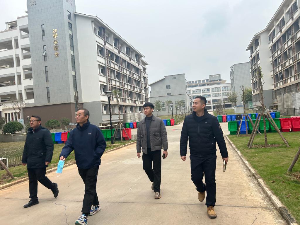 韦绍宁认真听取了后勤保卫处负责同志开学准备工作汇报,详细了解了寒假期间维修改造、校园安全隐患排查整改、新学期供餐、保洁、绿化、物业等后勤服务保障工作开展等情况,对后勤保卫处假期工作平稳有序开展、开学前各项准备工作安排到位予以肯定。韦绍宁一行深入图书馆、教学楼、实训楼、学生食堂、学生宿舍、西北片区等重点场所,围绕建筑安全、消防安全、食品安全、用电安全等方面进行了全方位检查。