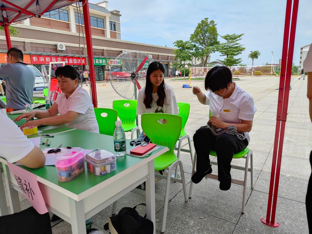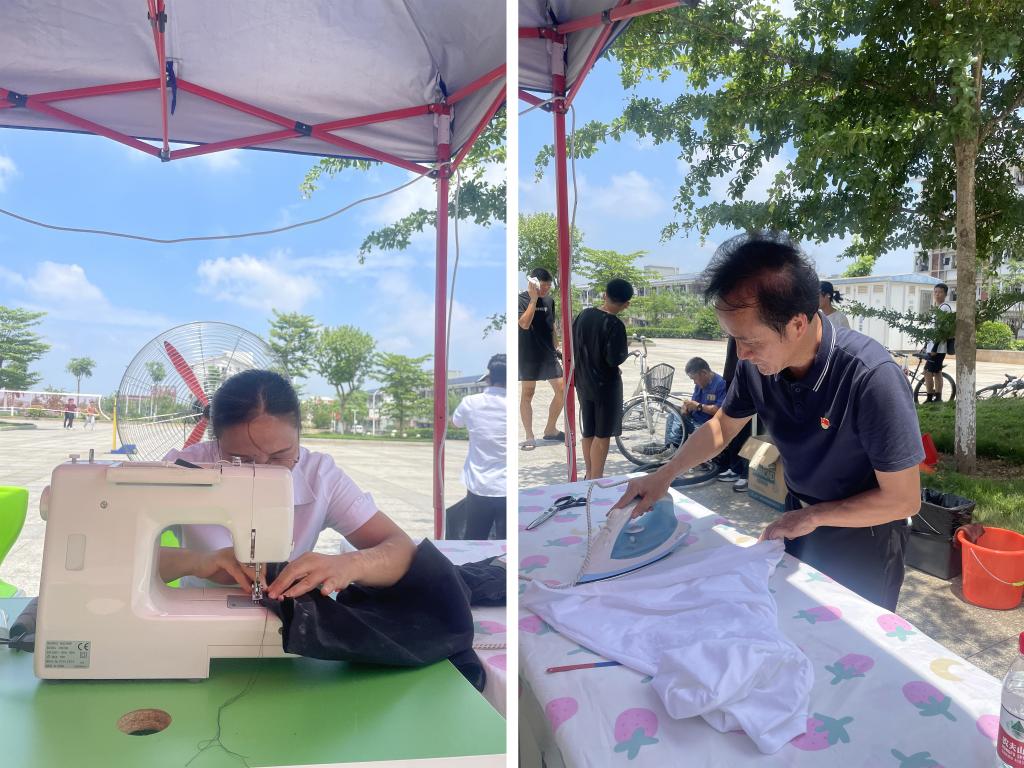 衣物缝补区,工作人员耐心地为师生修补衣物上的破损处,裁剪修改、熨烫衣物,一针一线都充满了对师生的关爱。