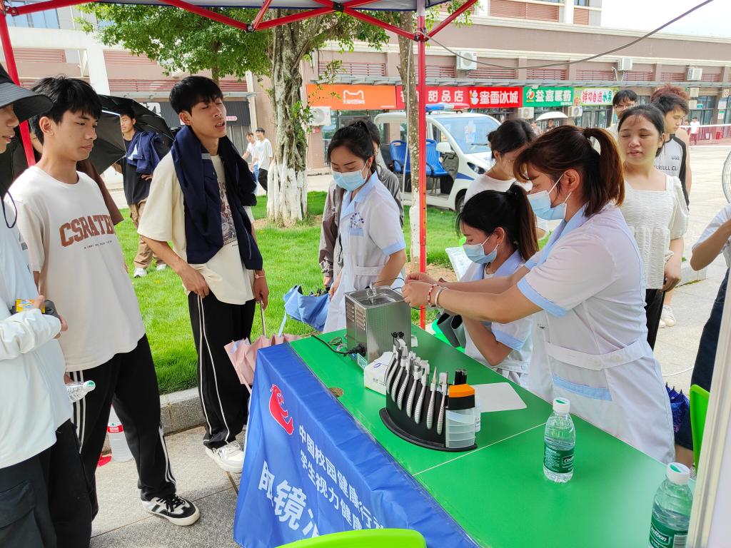 眼镜清洗及视力测试区,医护人员为师生们提供了专业的视力检测服务,并现场为眼镜进行清洗,让大家的视界更加清晰。