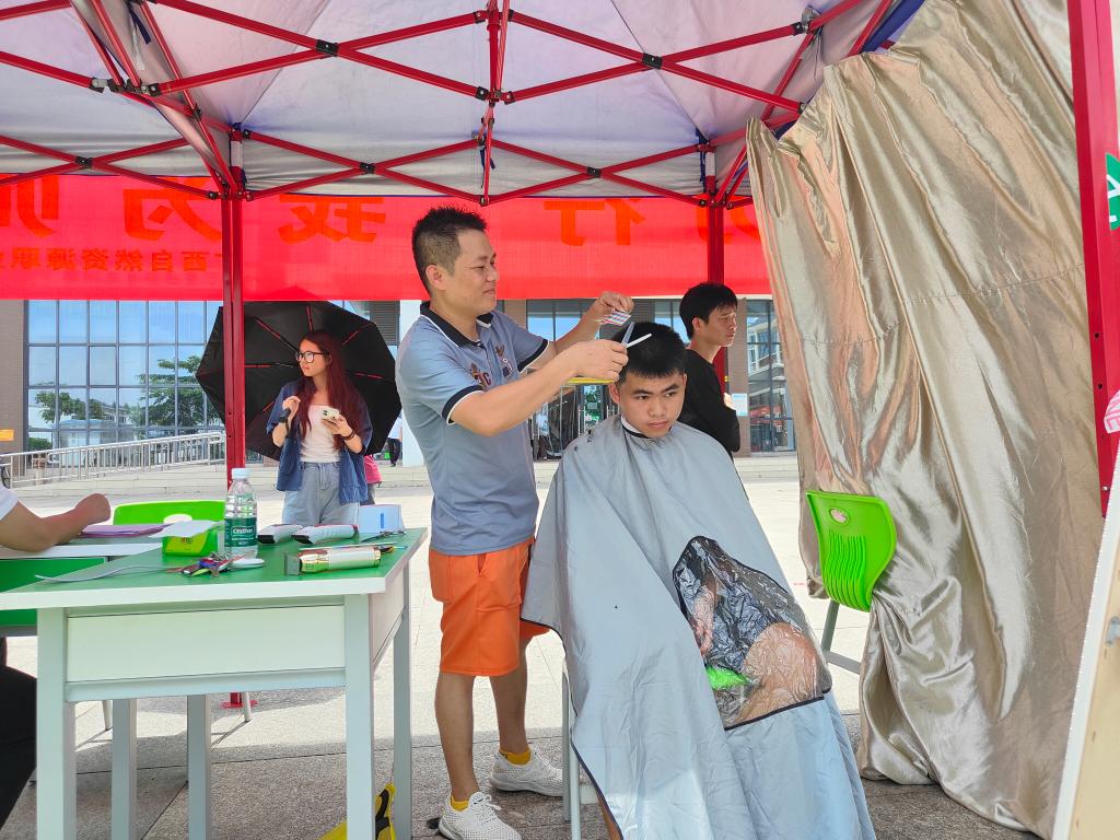平凡之中见伟大,细微之处显担当。在免费理发区,理发师的精湛的技术,贴心的服务,得到了师生们的一致好评。